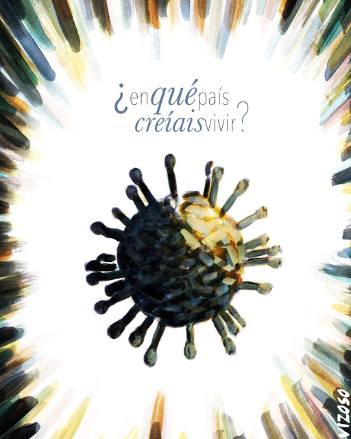 "...No todo lo que importa suena. Fíjense en el virus, que ha venido de puntillas, aunque pareciera que algunos quieren echarlo a golpe de cazos y tapaderas como platillos. Pero no, no se trataba de echar al virus. Las escenas más ruidosas han estado movilizadas por un grito localizado contra el Gobierno, como una reina de corazones pidiendo aquí y allí ¡que les corten la cabeza! La argumentación, crítica y alternativa de gobernanza que proponen quienes lo incentivan, no se muestra o no está, solo parecía sugerida por ollas golpeadas con cazos y sartenes, un palo de golf rebotando en una señal de tráfico, autobuses triunfales de quienes aspiran a crear una épica impostada, coches enfilados con sus bocinas pulsadas y gruñidos de motores diesel de última o penúltima generación.